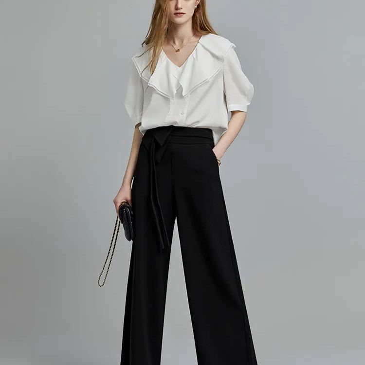 白色設計感優雅荷葉領小衫
