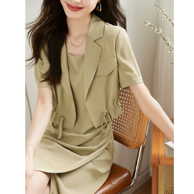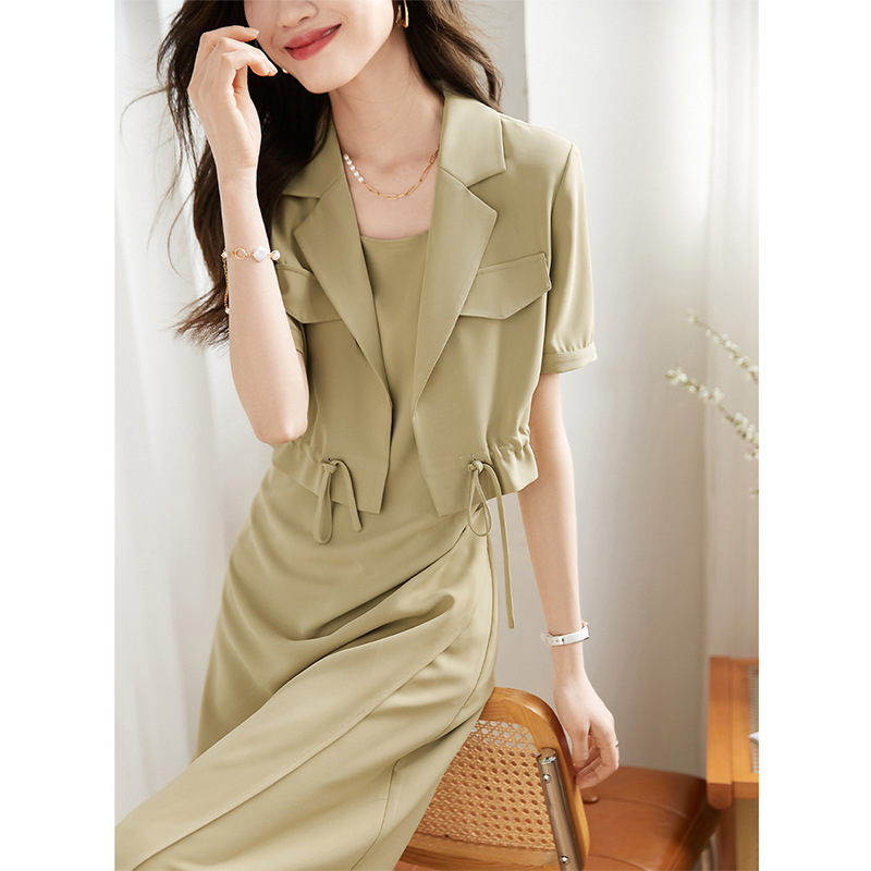 簡約質感吊帶裙抽繩短袖開衫兩件套