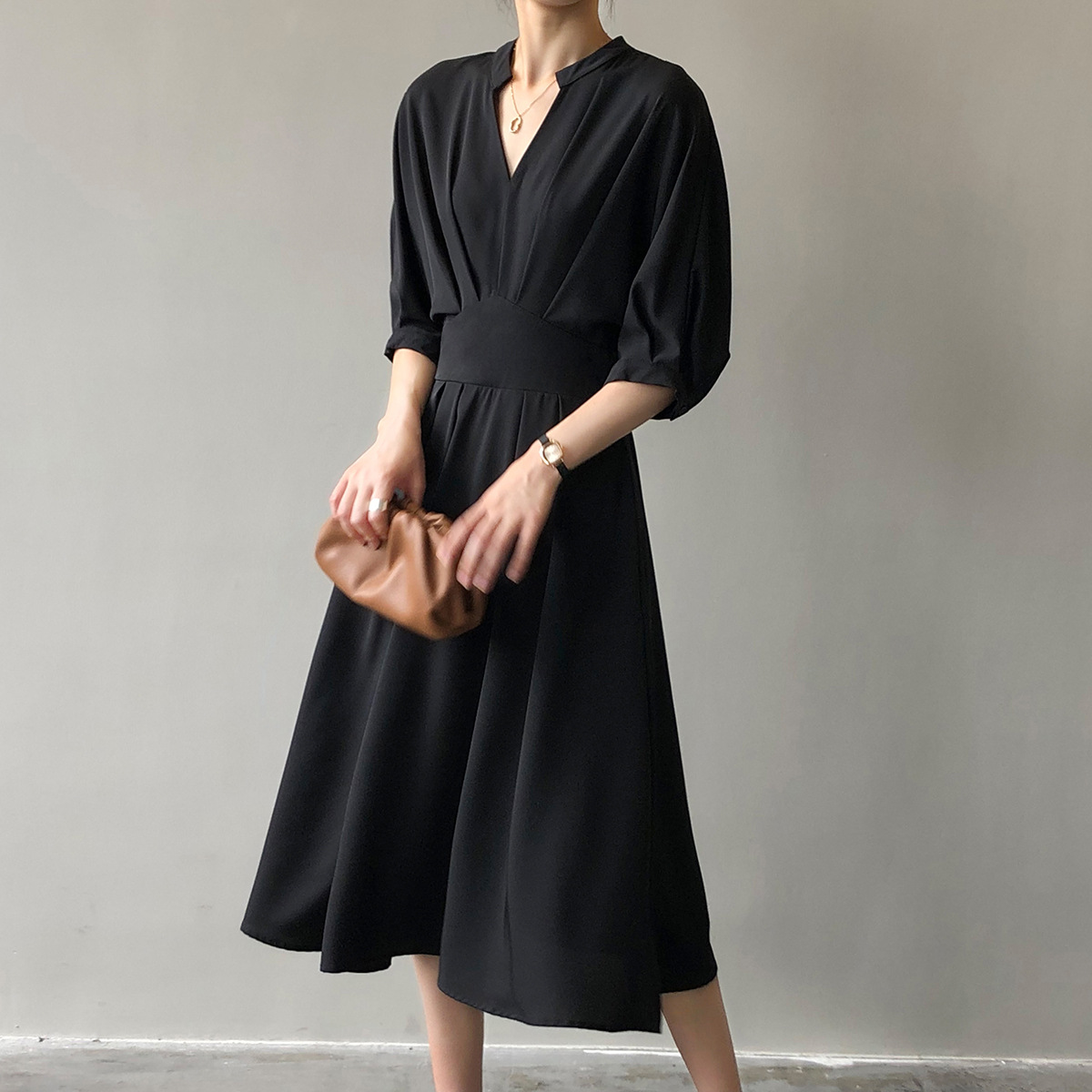 氣質洋氣修身顯瘦絕美V領連衣裙