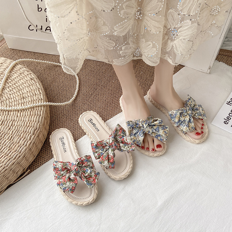 百搭仙女風甜美蝴蝶結平底海邊沙灘涼拖