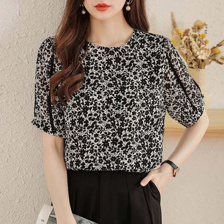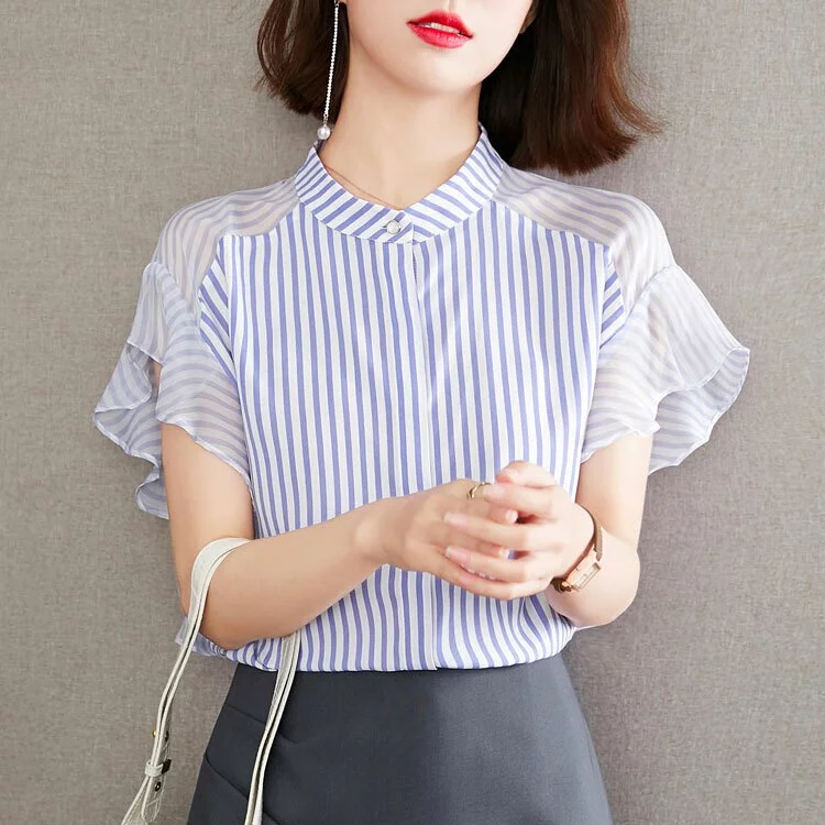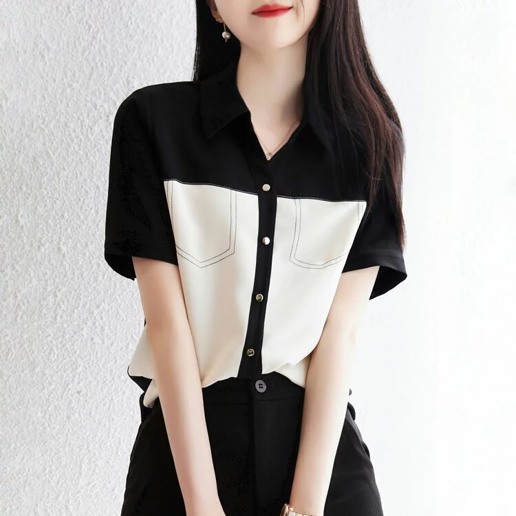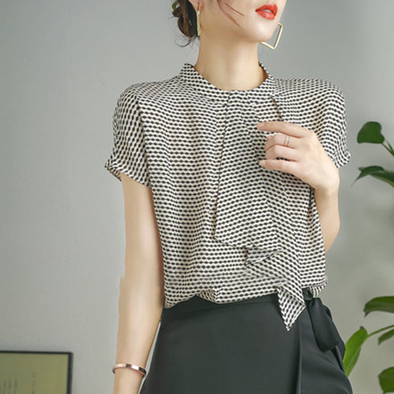 夏季清爽桑蠶絲蝙蝠袖蝴蝶結襯衫