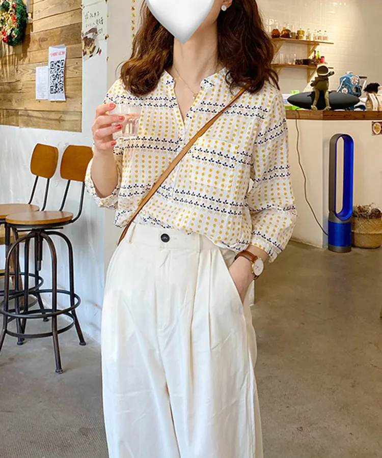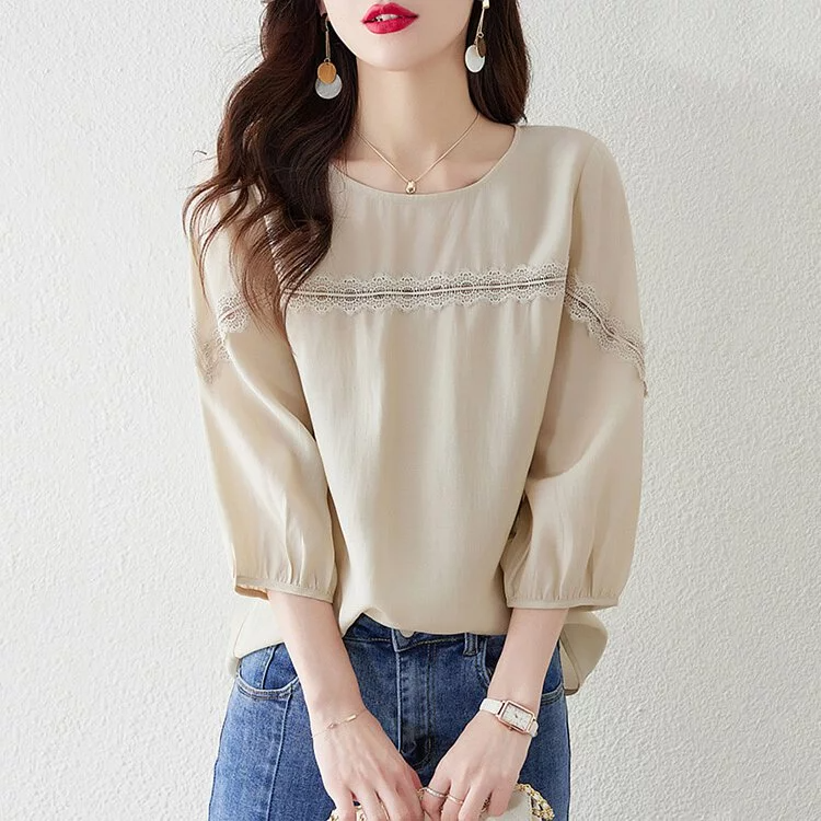 溫柔氣質蕾絲花邊拼接燈籠袖襯衫