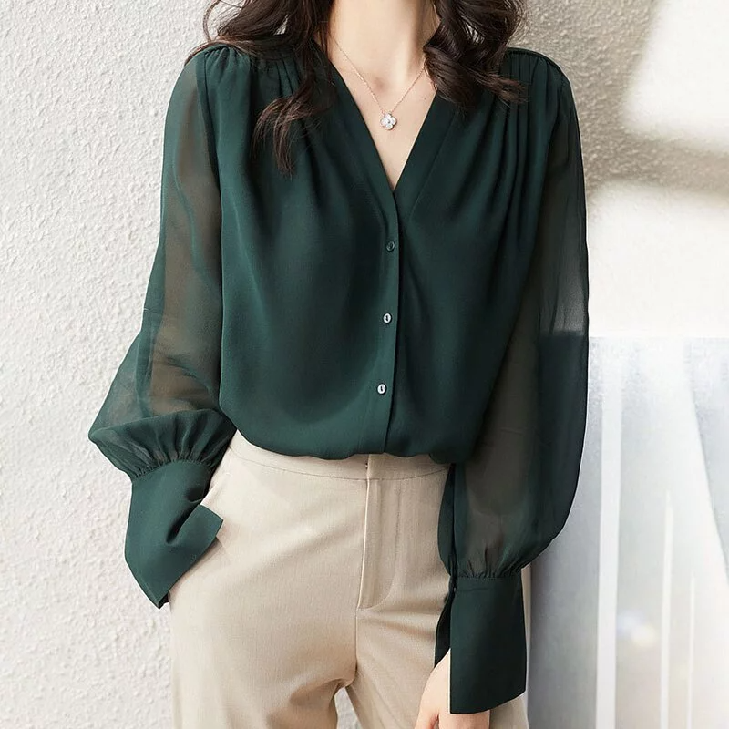 清涼飄逸感燈籠袖雪紡襯衫防曬衫(三色可選)