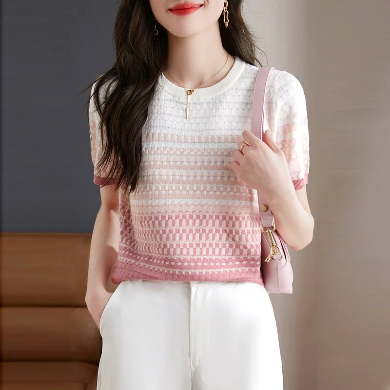 簡約風格V領薄款百搭假兩件針織T恤(5色可選)