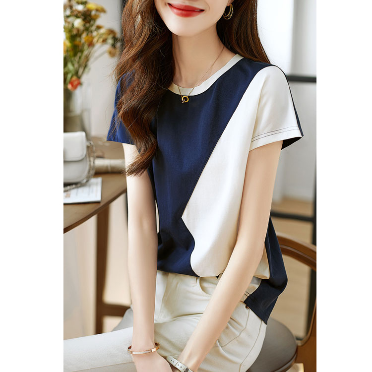 時尚百搭拼接顯瘦短袖T恤