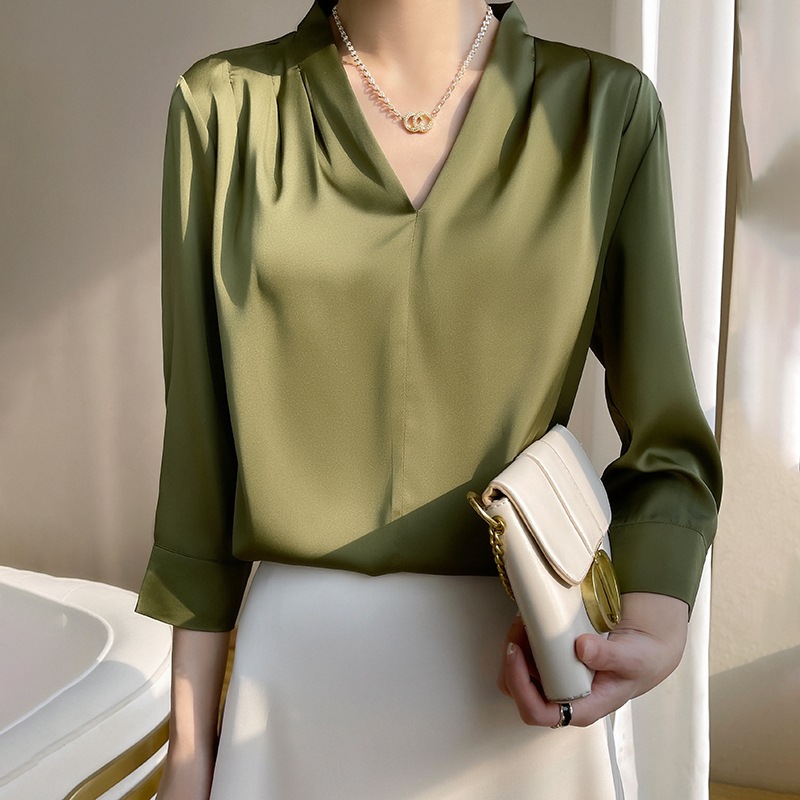 九分袖絲綢V領通勤氣質襯衫