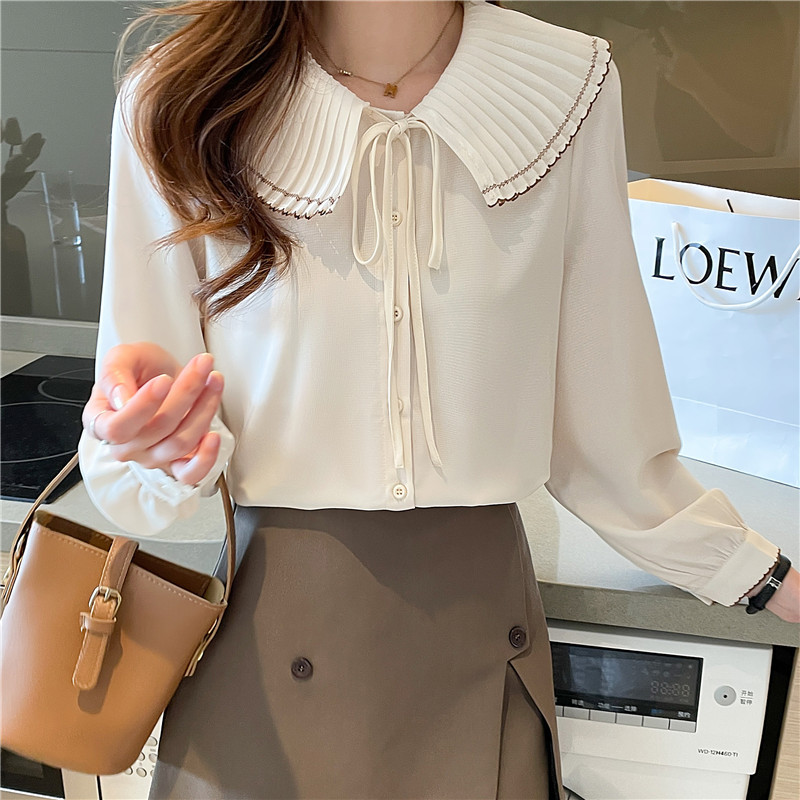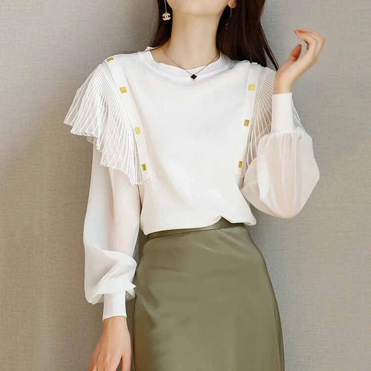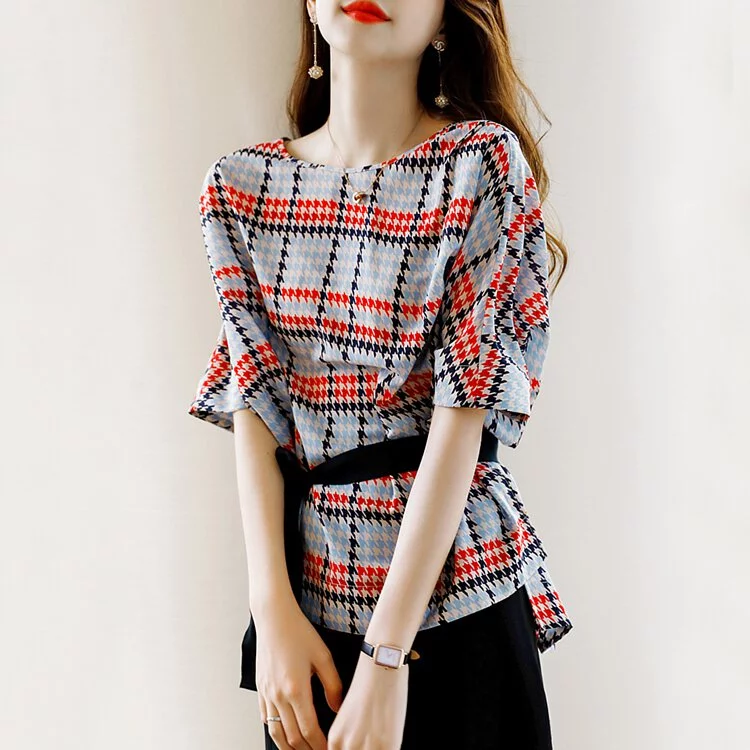 千鳥格雪紡繫帶顯瘦T恤上衣
