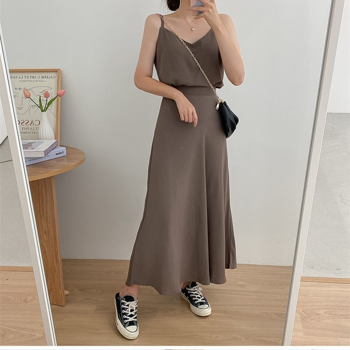 氣質純色吊帶背心+半身裙兩件套