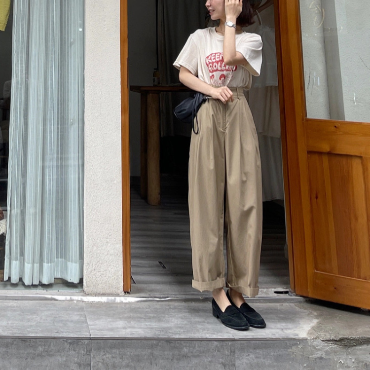 高腰直筒休閒褲女夏薄款垂感哈倫褲