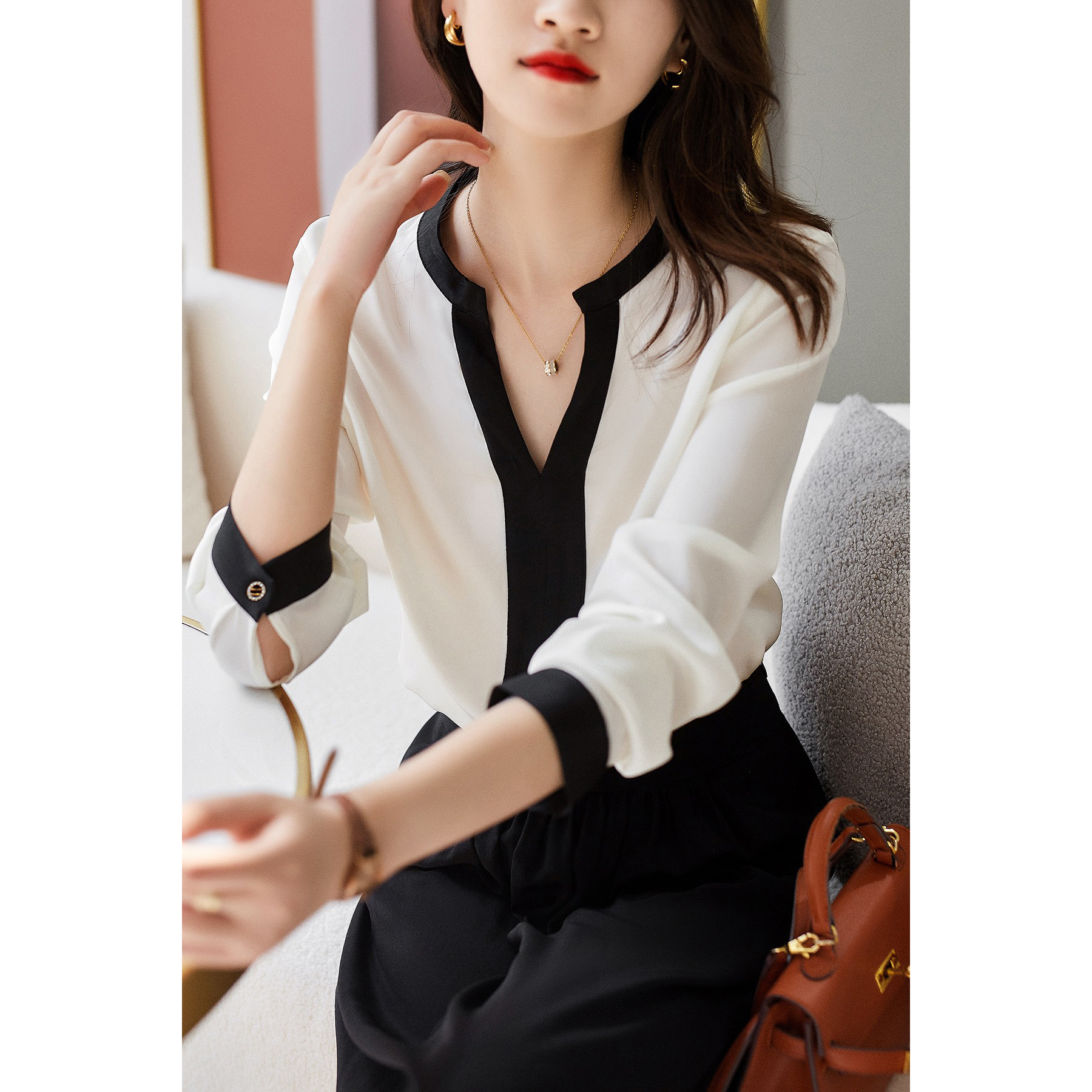 款式簡約卻不簡單,撞色搭配,不費力的演繹什麼是實穿~