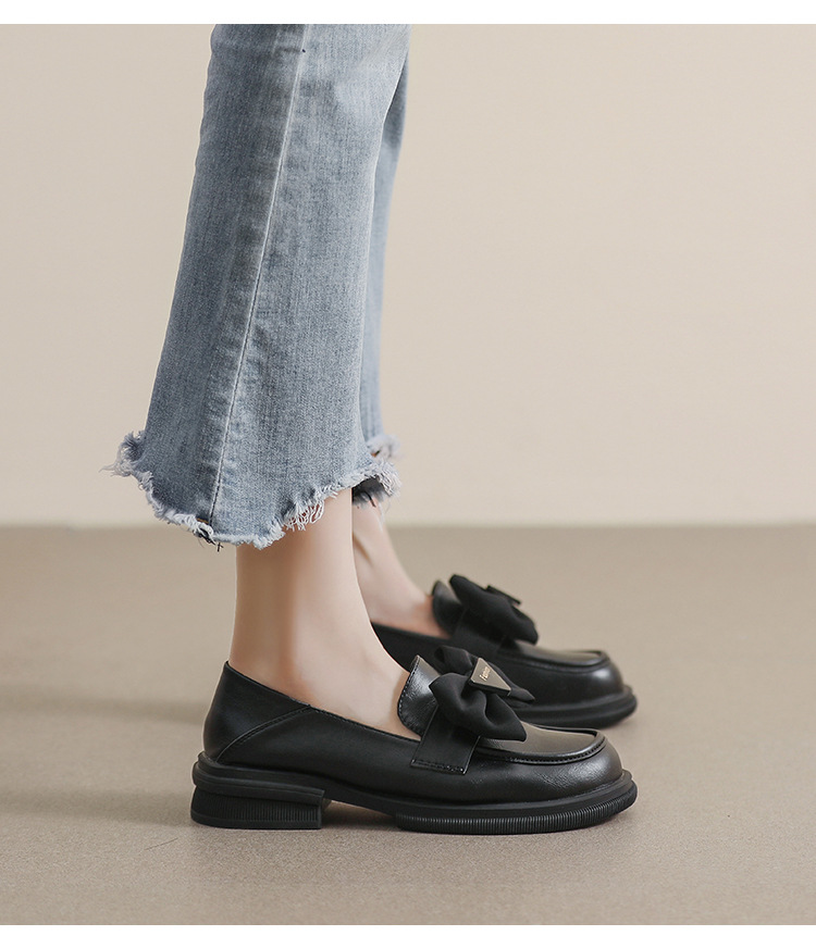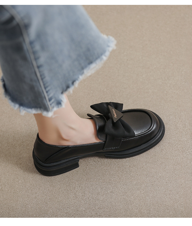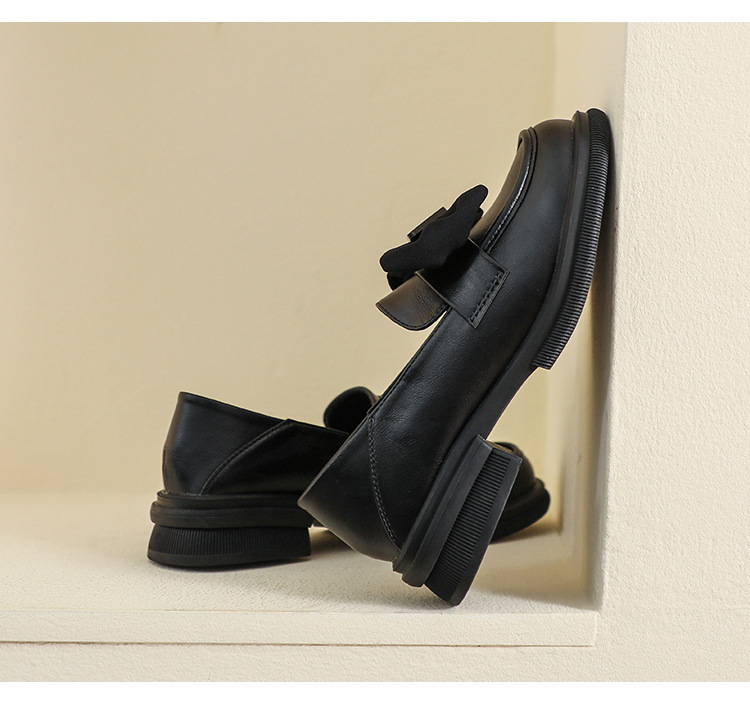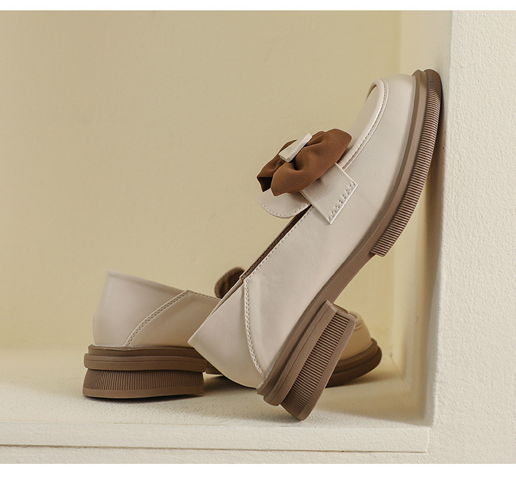 這款鞋子擁有精美的蝴蝶結和舒適的軟底設計,展現出英倫風格的優雅與時尚。