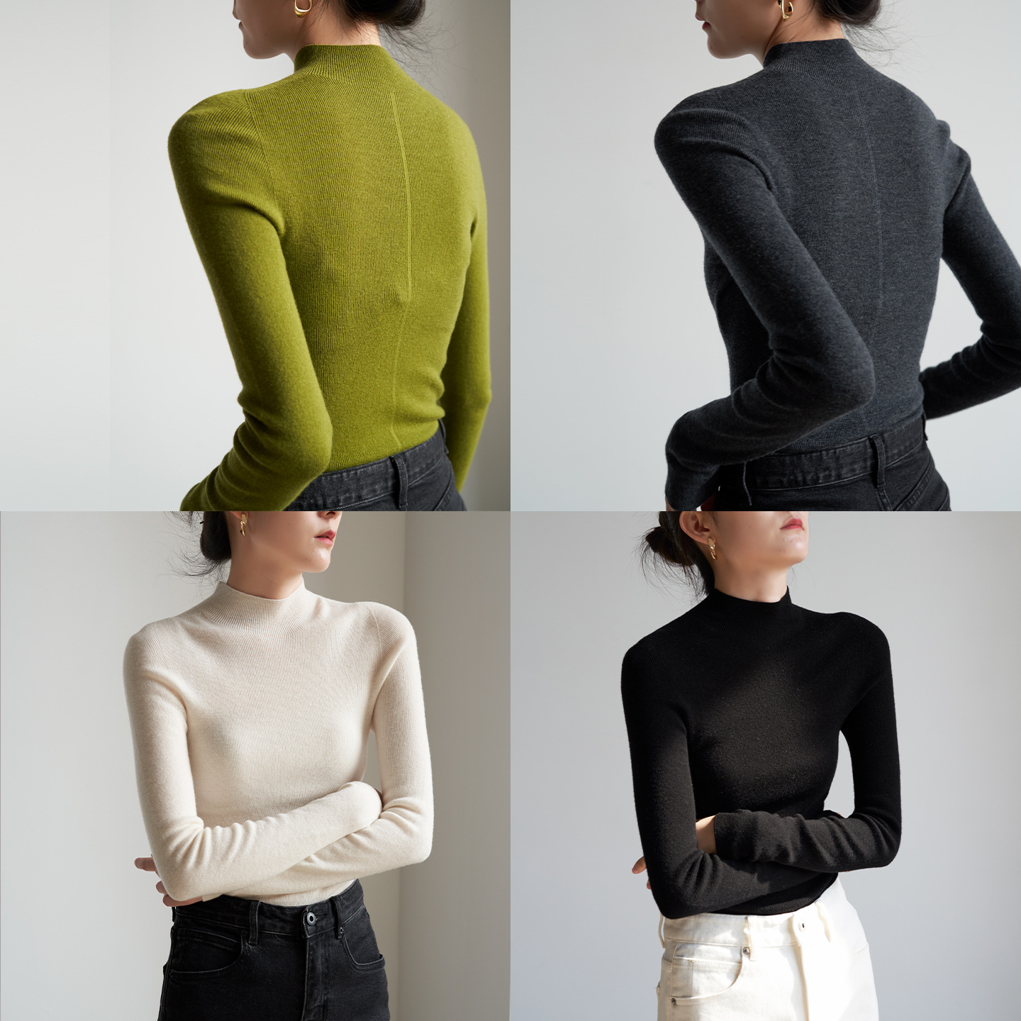 以通勤氣質為靈感,設計師精心打造出這款半高領羊毛打底針織衫
