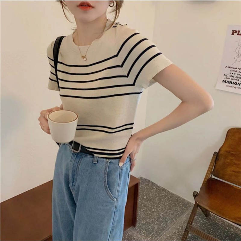 條紋上身不會太誇張 視覺上很清爽乾淨的色系